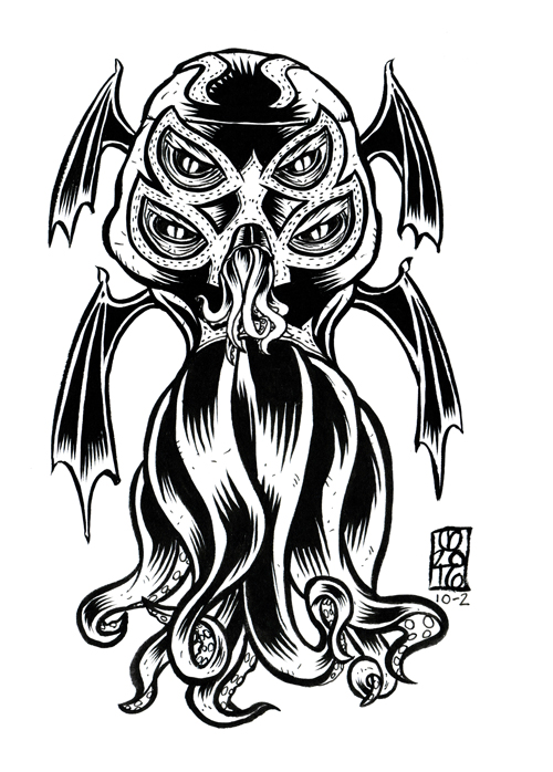 5X7 inch original illustration. Lucha Libre themed 2016 INKtober illustration. A new daily illustration created each day through out the month of October.