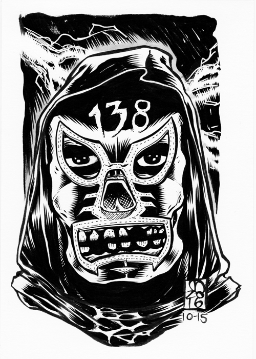 5X7 inch original illustration. Lucha Libre themed 2016 INKtober illustration. A new daily illustration created each day through out the month of October.