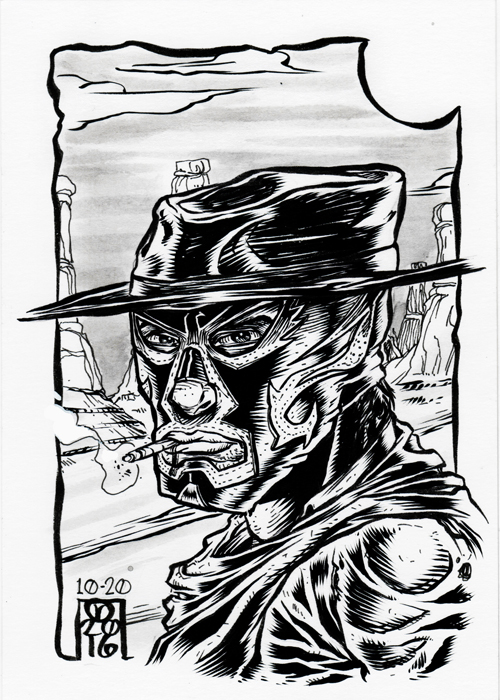 5X7 inch original illustration. Lucha Libre themed 2016 INKtober illustration. A new daily illustration created each day through out the month of October.