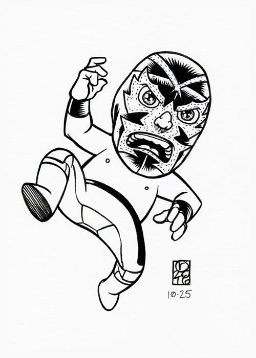 5X7 inch original illustration. Lucha Libre themed 2016 INKtober illustration. A new daily illustration created each day through out the month of October.