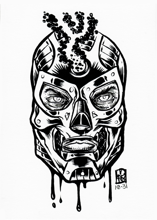 5X7 inch original illustration. Lucha Libre themed 2016 INKtober illustration. A new daily illustration created each day through out the month of October.