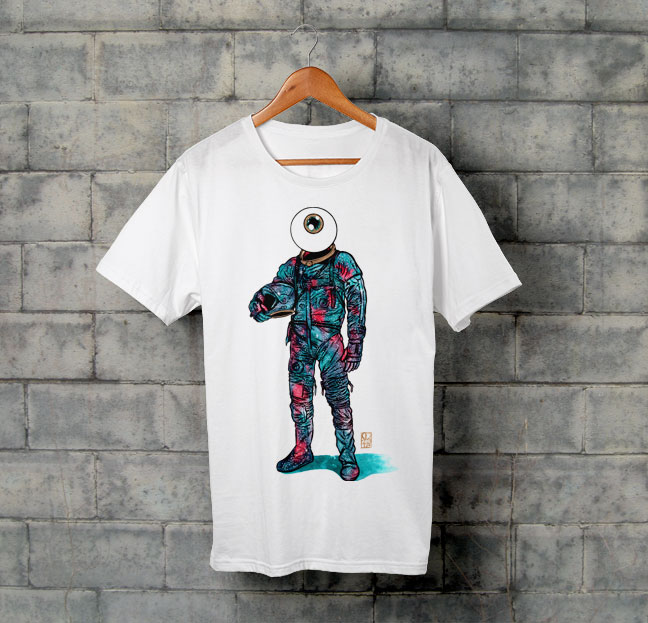 The seeing eye of cosmic infinity wanders solitarily through the multiverse. Buy the shirt and be his traveling buddy, it would sure put a smile on his retina.