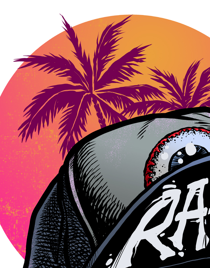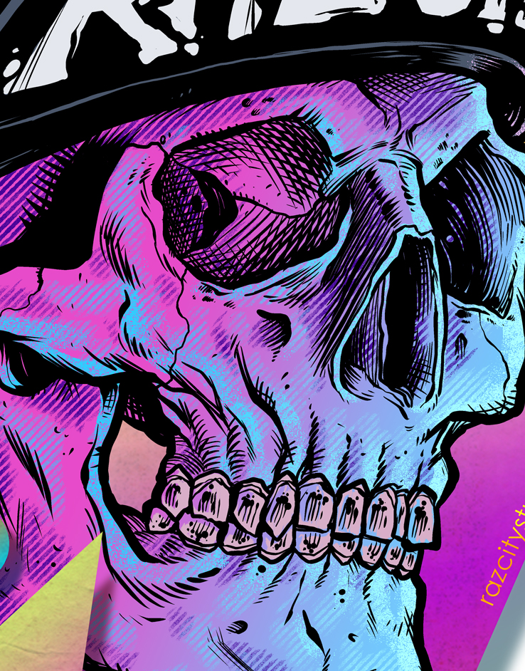 Beneath the 80's neon glow the Thrasher Skull is ready to eat your soul