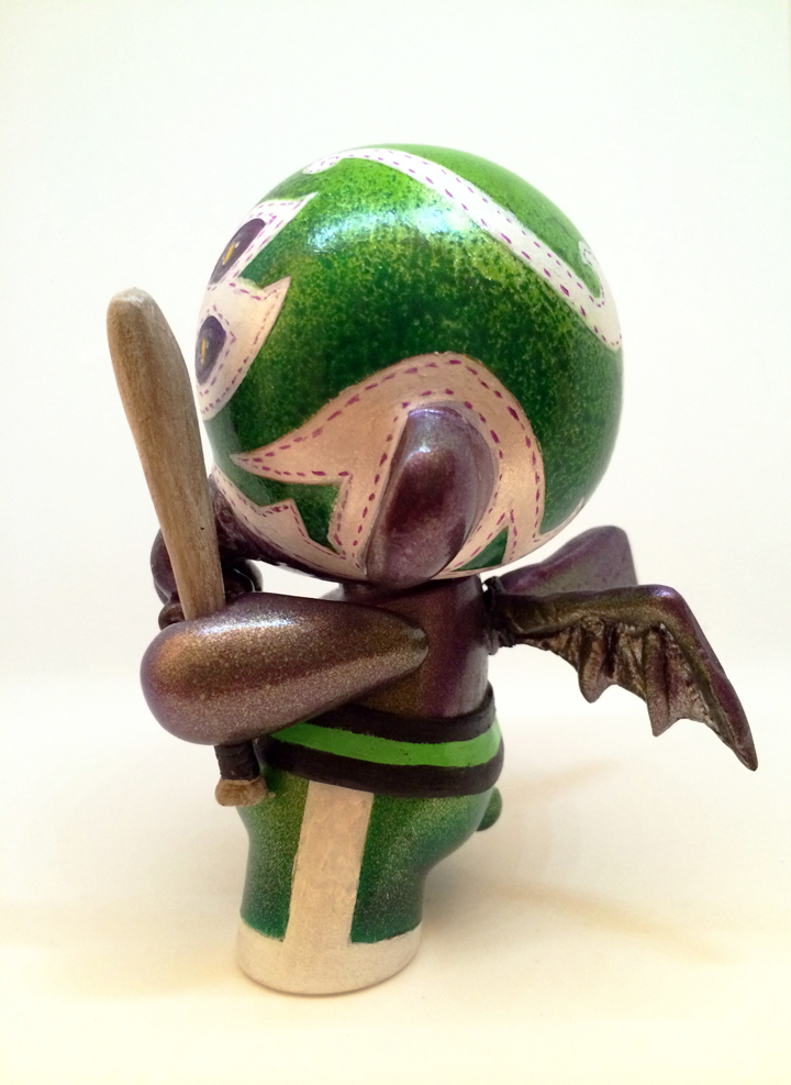 Cthulhuchador, 4 inch customized Dunny using spray paints, acrylics and apoxie. He comes with his own wrestling ring.