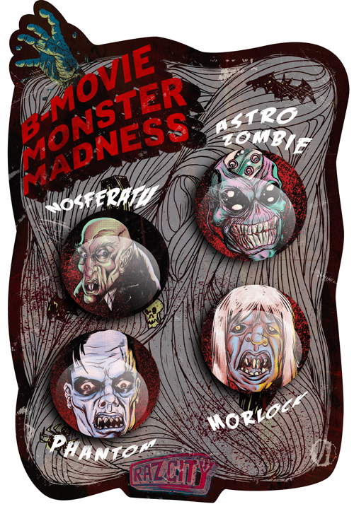B-movie Monster Madness 4 Button set