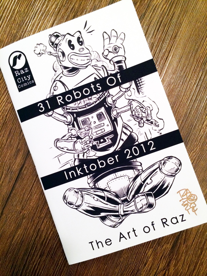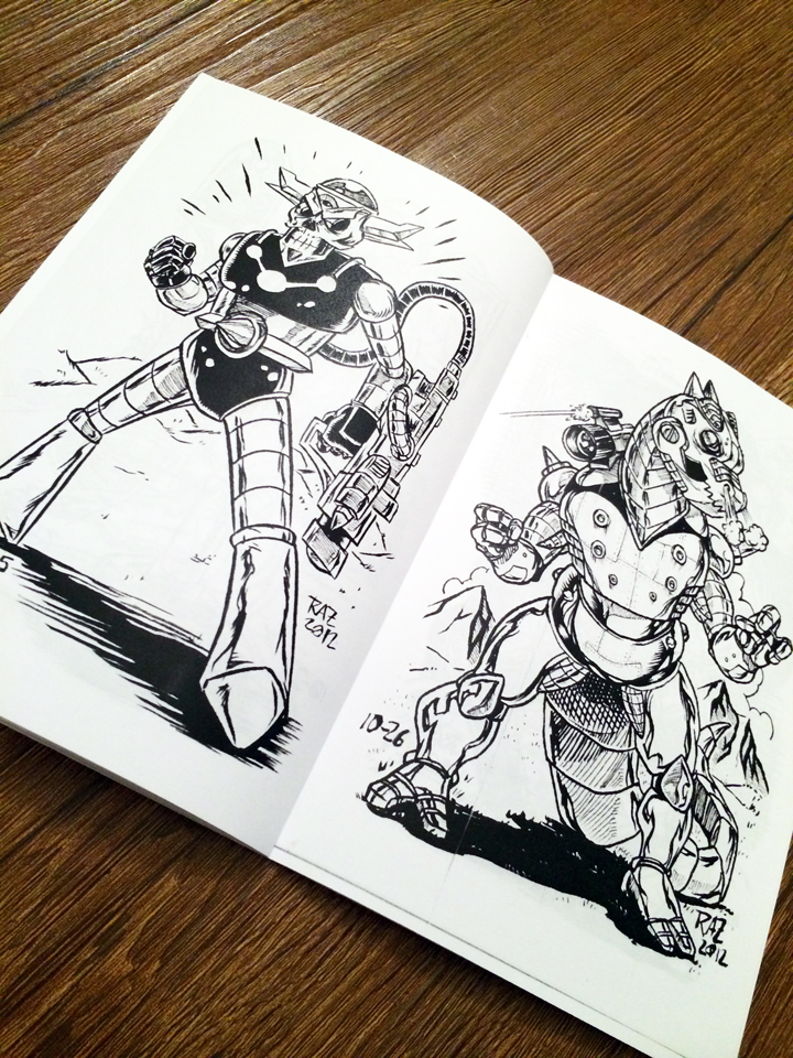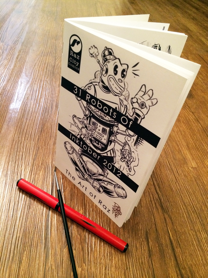 For this collection it was ROBOTS. Being that the 2 things I really love is Robots and Monsters. This book collects the 31 Robots created during INKtober of 2012. Each collection will include an original sketch on the final page. You can choose what you want for the sketch or leave it as Artist's choice.