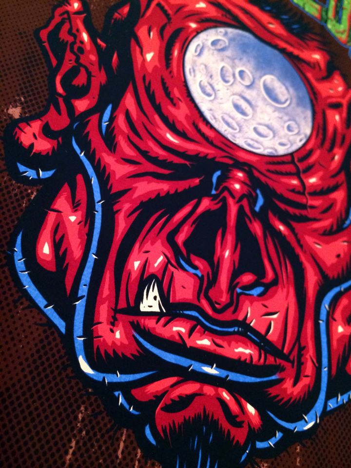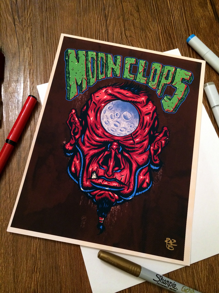 Print size 8.5" x 11" Cyloptic creature with a moon for an eye. Puts the whole term "man in the moon" saying on its head. More like the moon in the man.