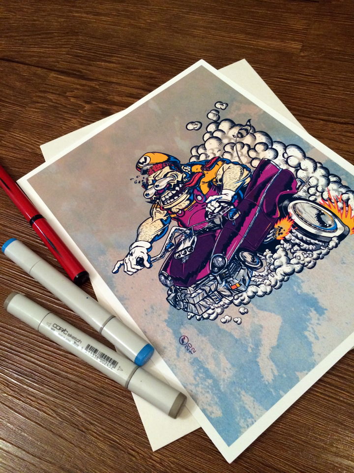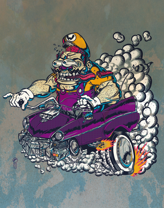 Wario done up in a homage to the Ed "Big Daddy" Roth style of the late 70's.