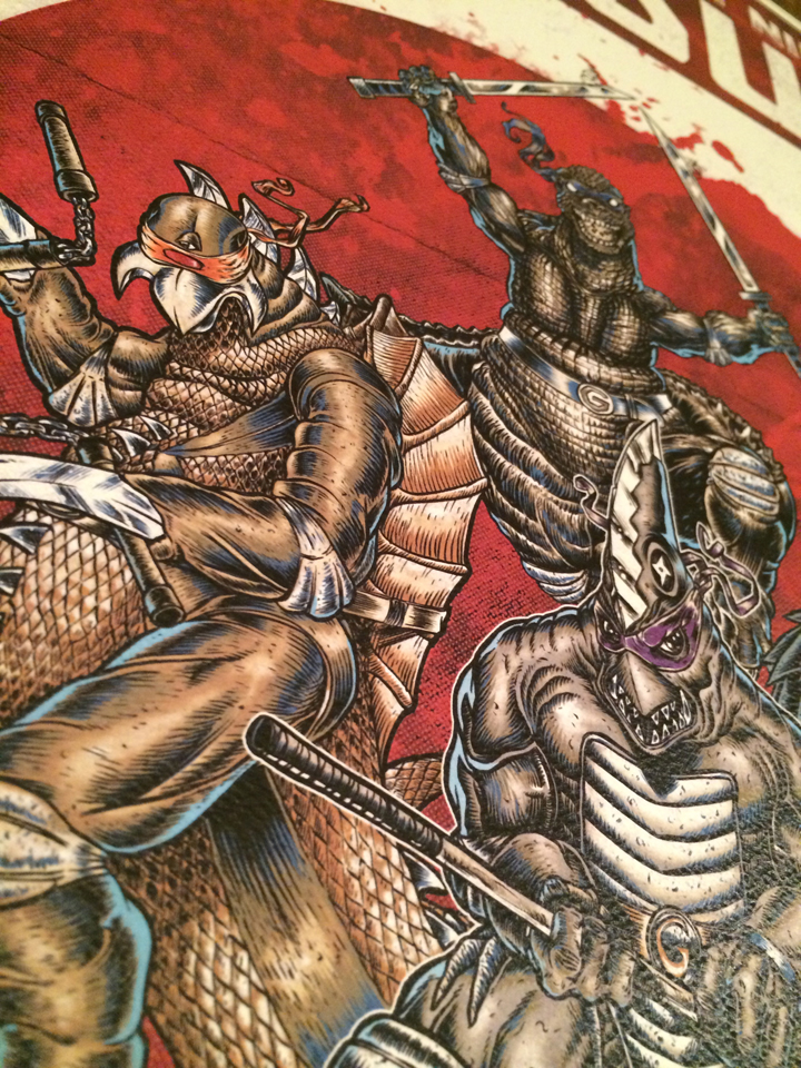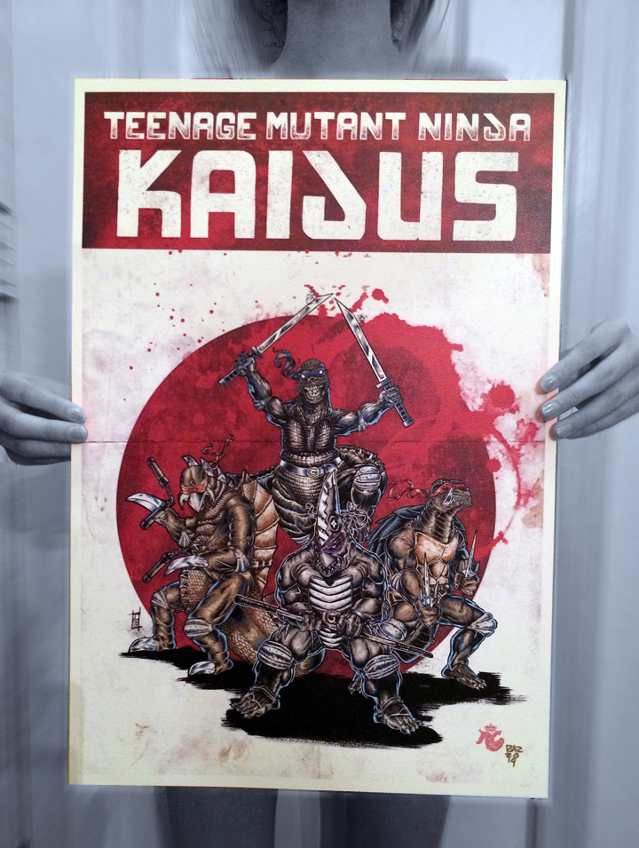 As a fan of the classic Japanese monster movies and a fan of the TNMT, I figure a mash-up of these 2 was in order. The red circle in the background to re-enforce the Japanese origin of these majestic creatures. Gamer, Gojira, Guiron and Gigan.